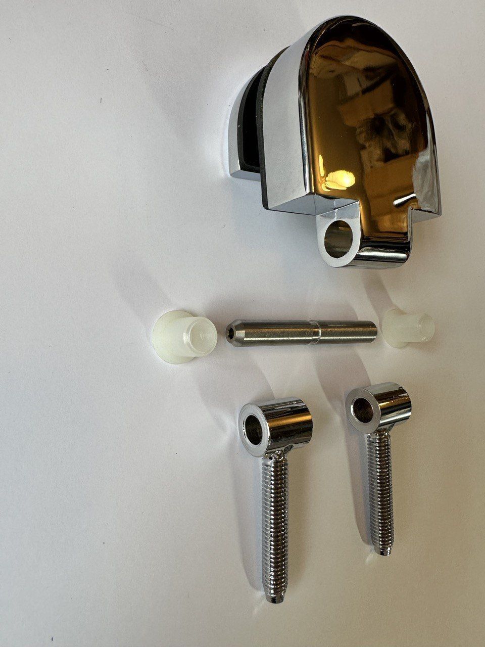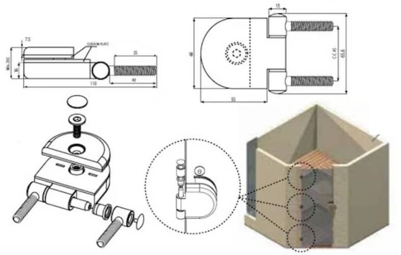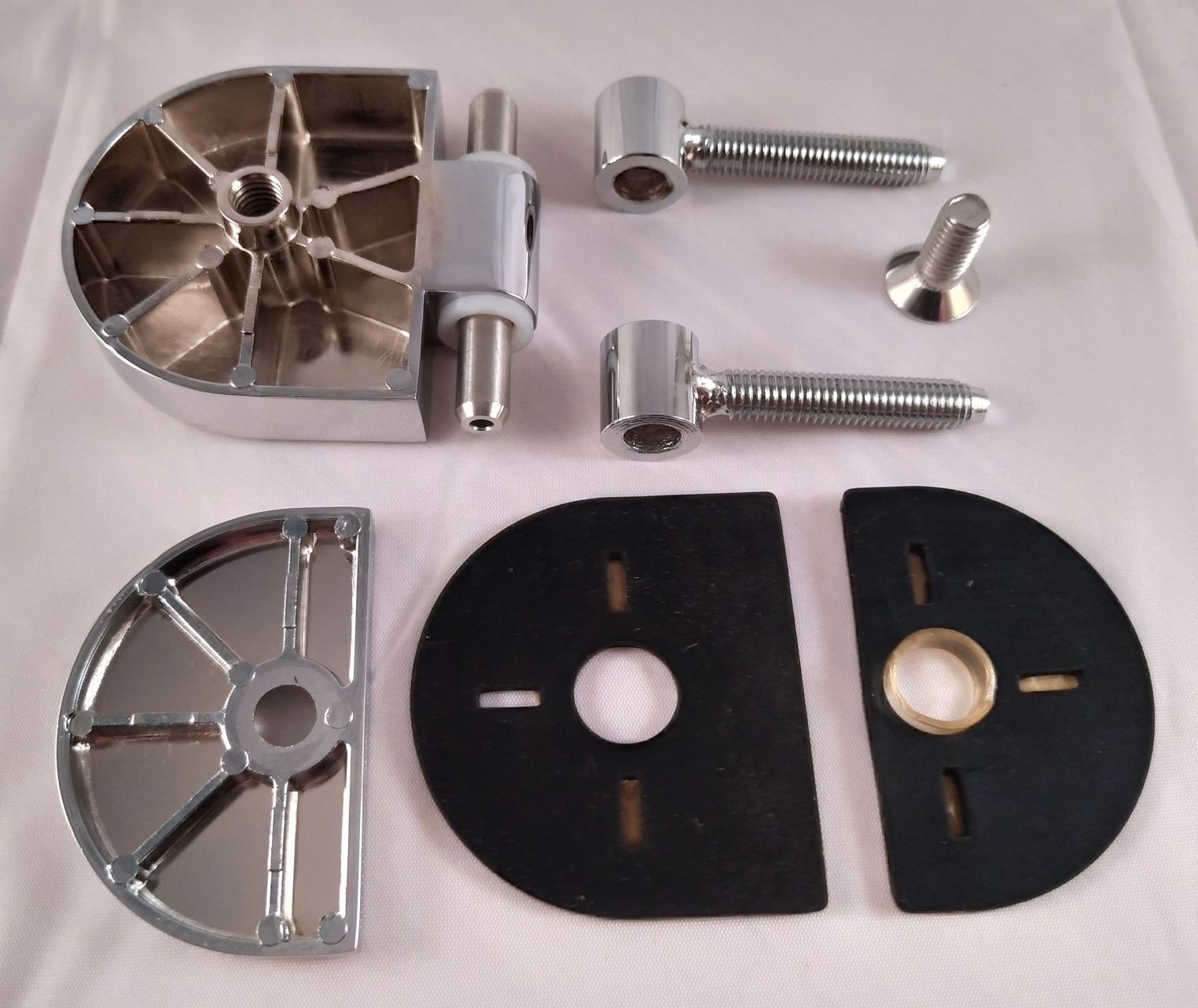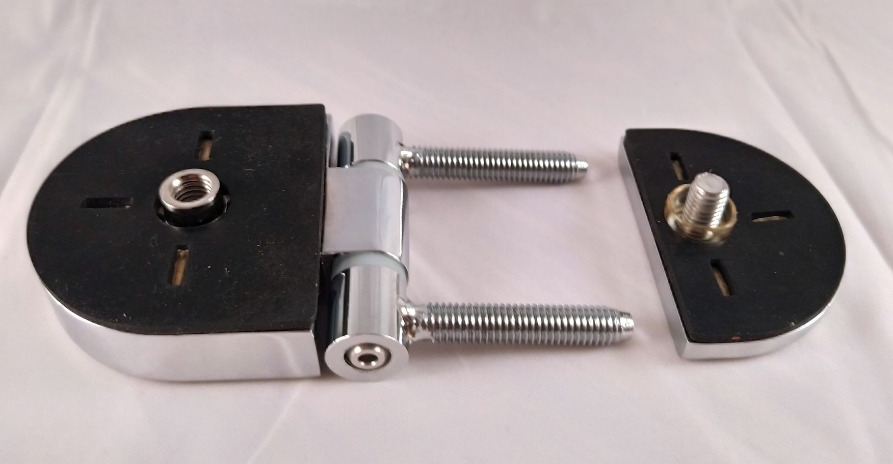Петля проста в установке: опора петли (⌀ 8мм. и длиной 40мм.) запрессовывается прессом или забивается резиновым молотков в отверстие высверленные в деревянной коробке, далее стеклянное полотно надевается на петлю.